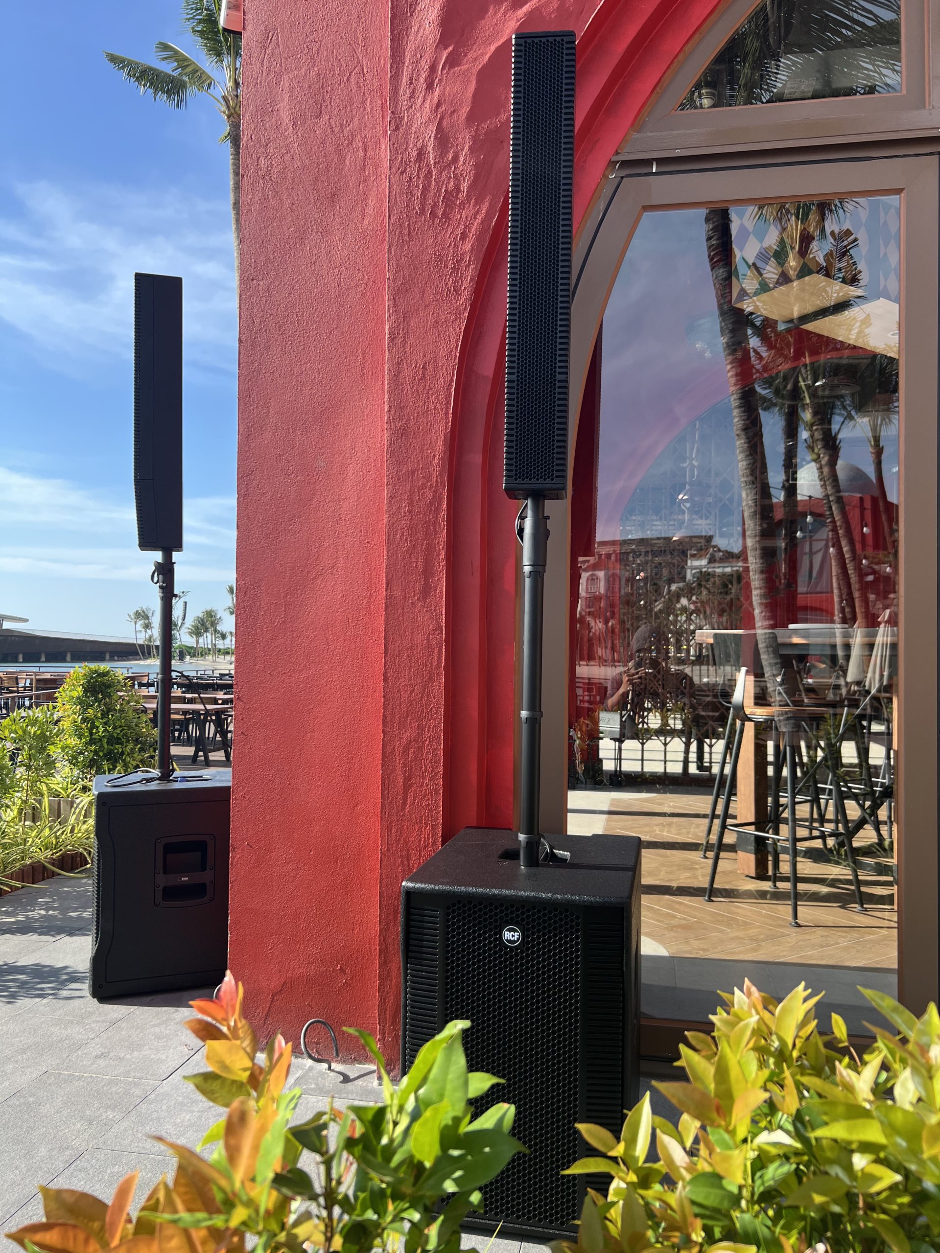 Đơn giản là vì cái VIEW TRIỆU ĐÔ! Cái view Cầu Hôn với show Symphony xịn sò thế kia mà quất mấy quả loa thùng to tổ bố vào che hết thì phí của giời à? Con Evox này dáng chuẩn siêu mẫu, thanh mảnh, nép vào cột cái là “biến hình” mất tích luôn, trả lại view 100% cho khách sống ảo. Chụp hình check-in không bị dính cái loa nào, ưng cái bụng ghê!