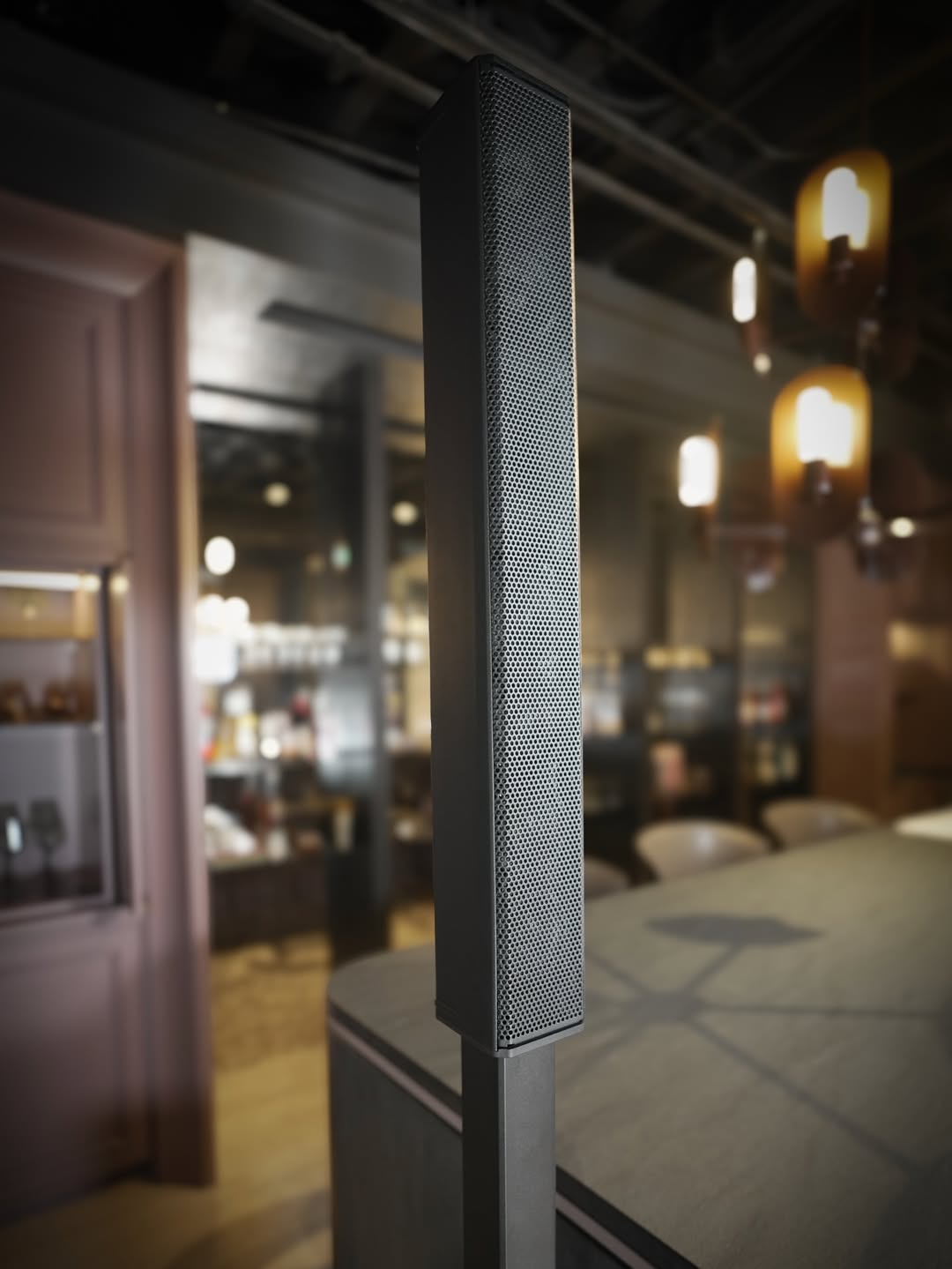 Hệ thống 3-way với compression driver 1.75″ Neo kết hợp waveguide 120° × 40° cho ra vùng phủ sóng cực kỳ đồng đều. Tôi đã đi vòng quanh phòng trong lúc nhạc đang chạy — từ góc quầy bar, từ bàn giữa, thậm chí góc khuất gần cửa ra vào — âm lượng và chất âm gần như không thay đổi. Đây là điều mà ceiling speaker cũ không bao giờ làm được.