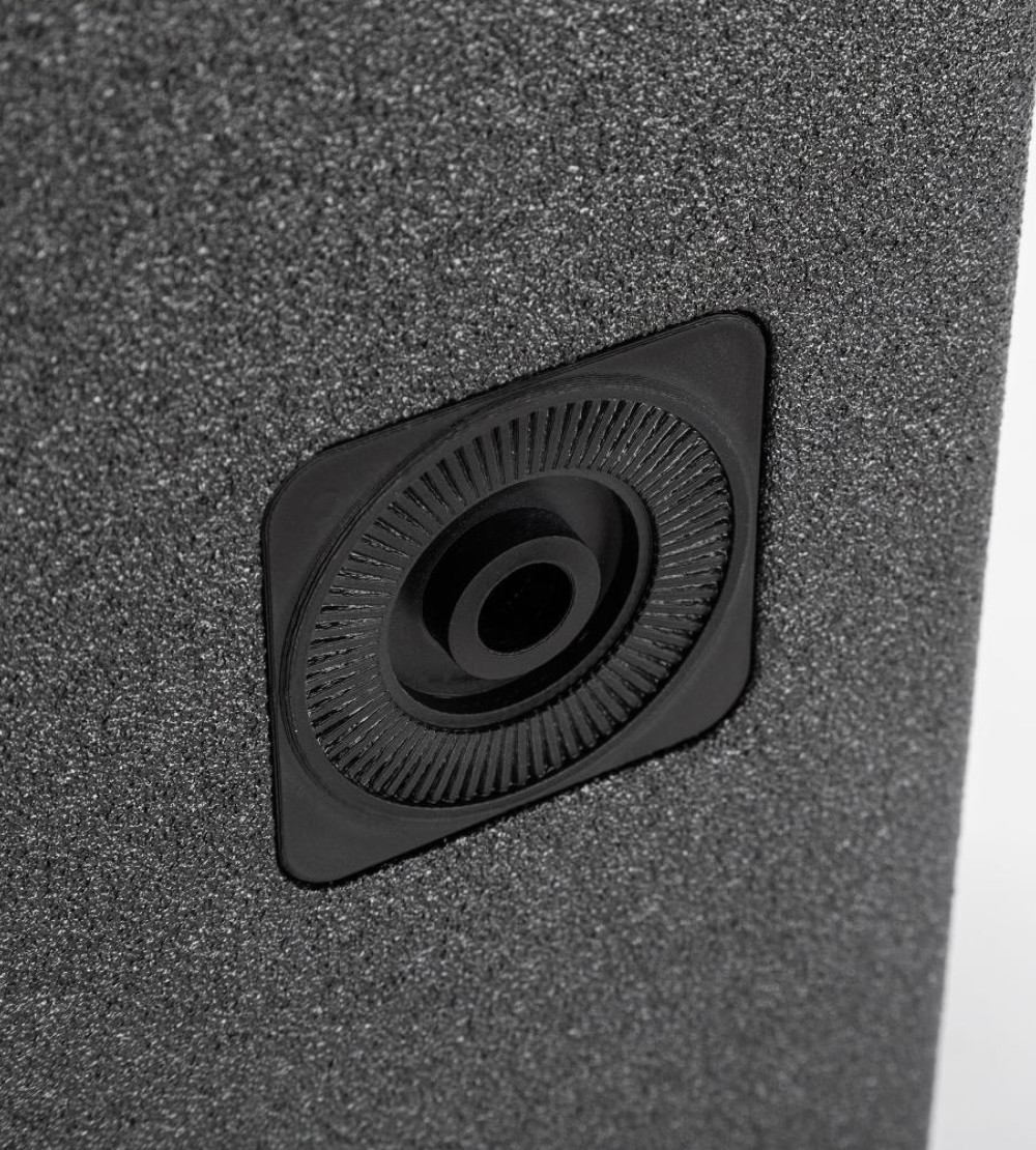 Lỗ gắn chân loa phía dưới cho phép sử dụng loa như một hệ thống âm thanh điểm nguồn (point source) đặt trên chân đứng hoặc cọc subwoofer.